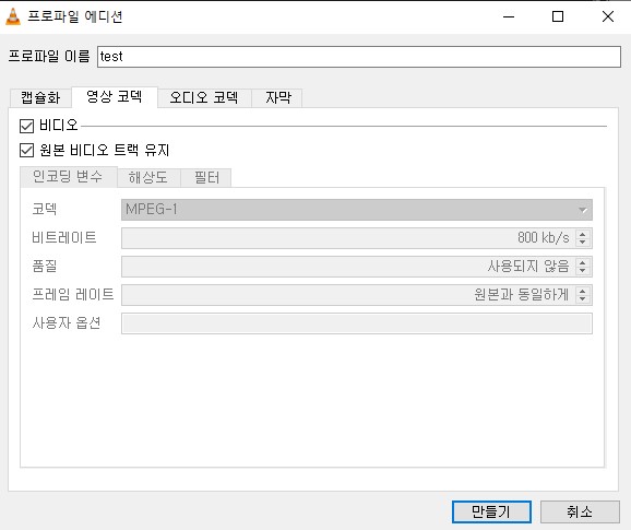 가끔 VLC의 이 기능이 제대로 동작하지 않거나, 결과물이 없는 경우가 있어 FFmpeg처럼 강력하게 지원되진 않습니다.